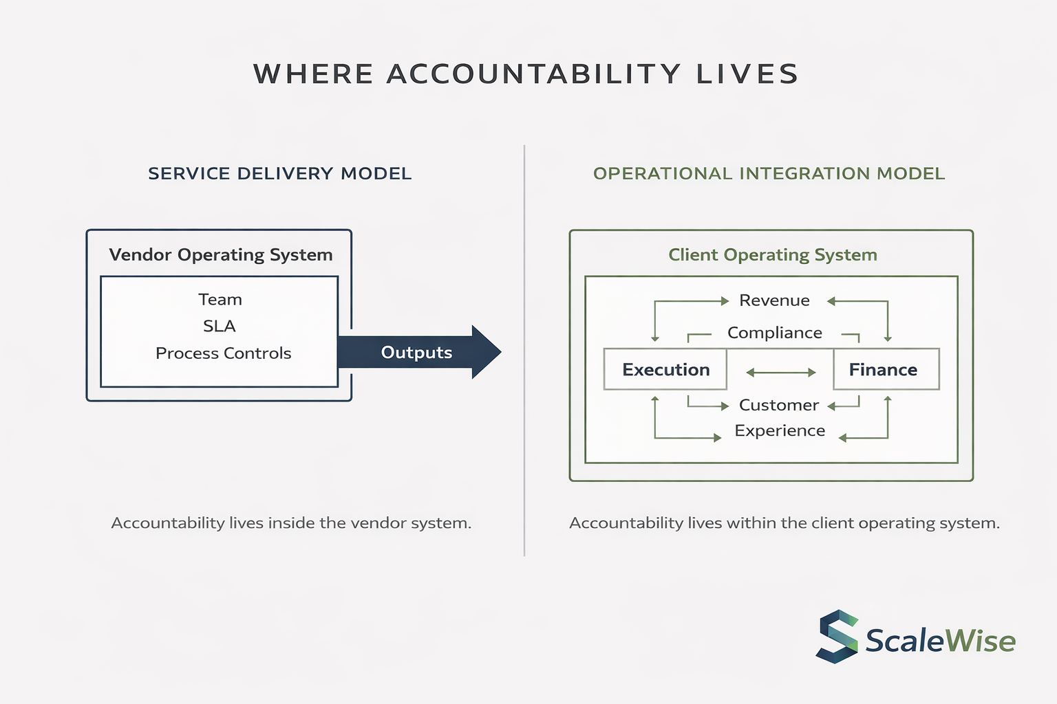 In one model, accountability lives in the vendor's delivery design.